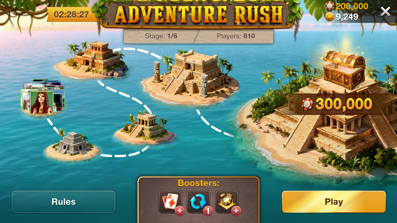 Adventure Rush is an event where players need to win a series of tournaments to claim the main prize.
