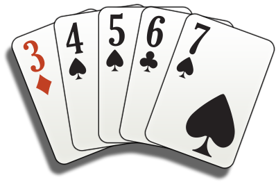 - Five consecutive cards of mixed suits.