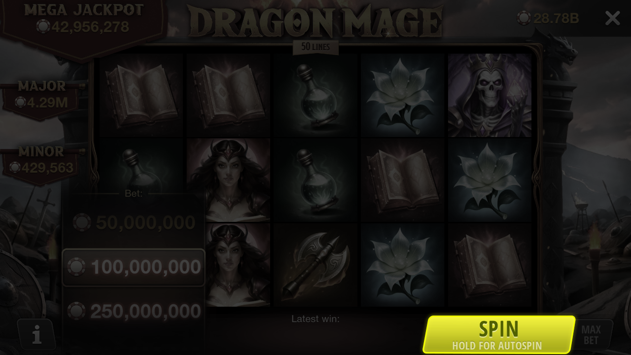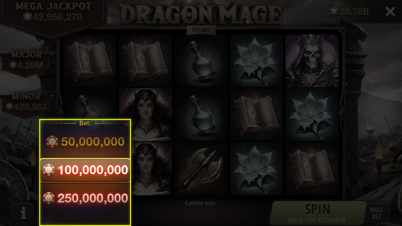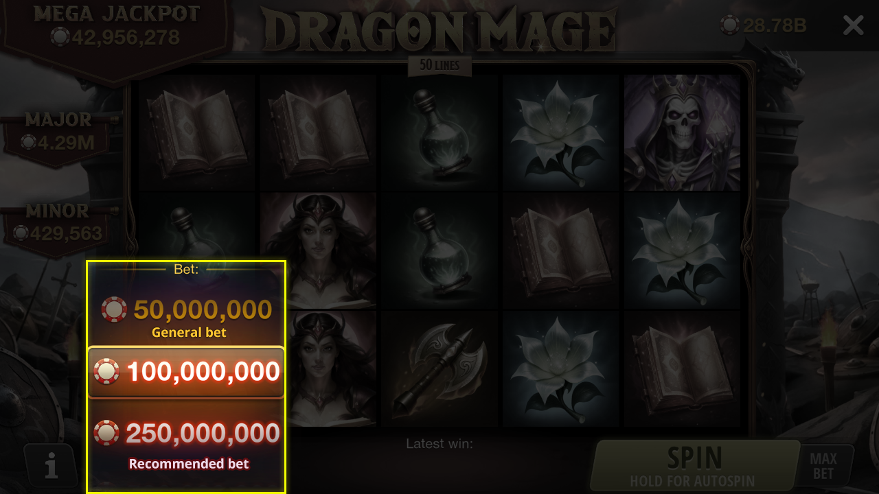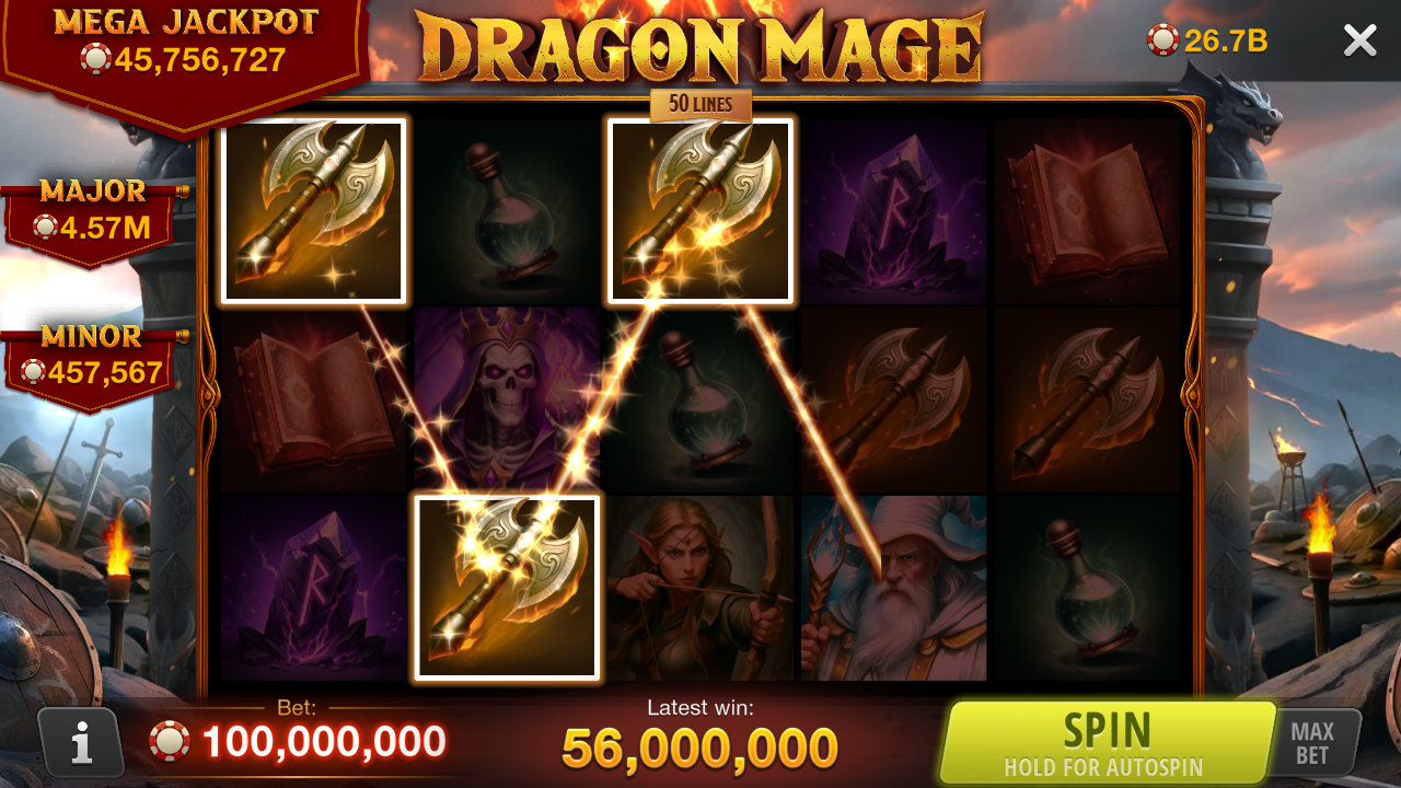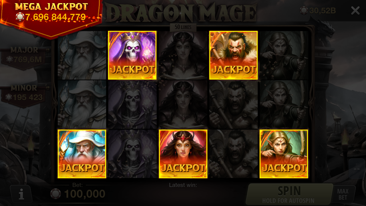 Example: You bet 100,000 chips. Three elves (multiplier 20x) appeared on one line, and four barbarians (multiplier 150x) appeared on another.