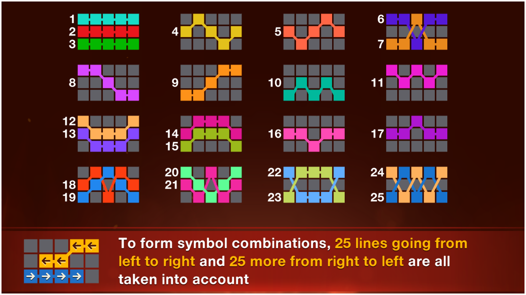 - Symbol combinations are counted from left to right and right to left, starting from the left or right row, respectively.