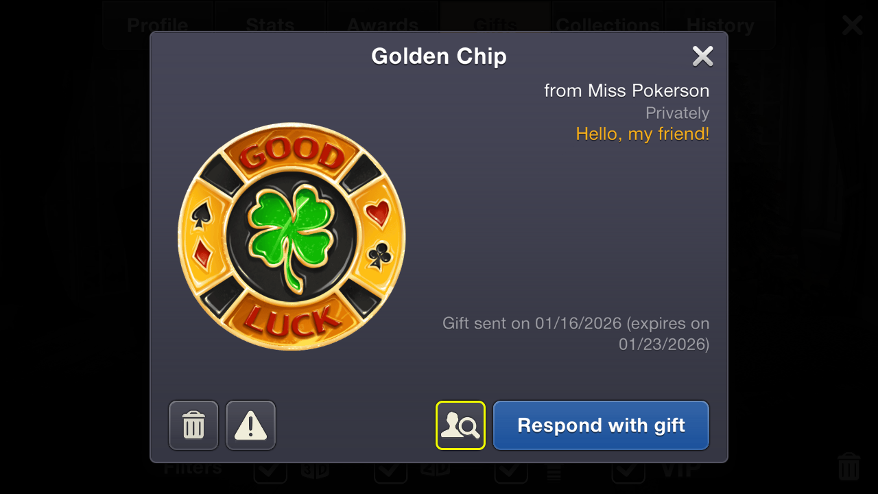 If you have received a non-anonymous gift from another player, you can open their profile from the gift notification. Tap the "Profile" button next to the sender's name to view their profile, where you can send a gift back, add them as a friend, or show respect.