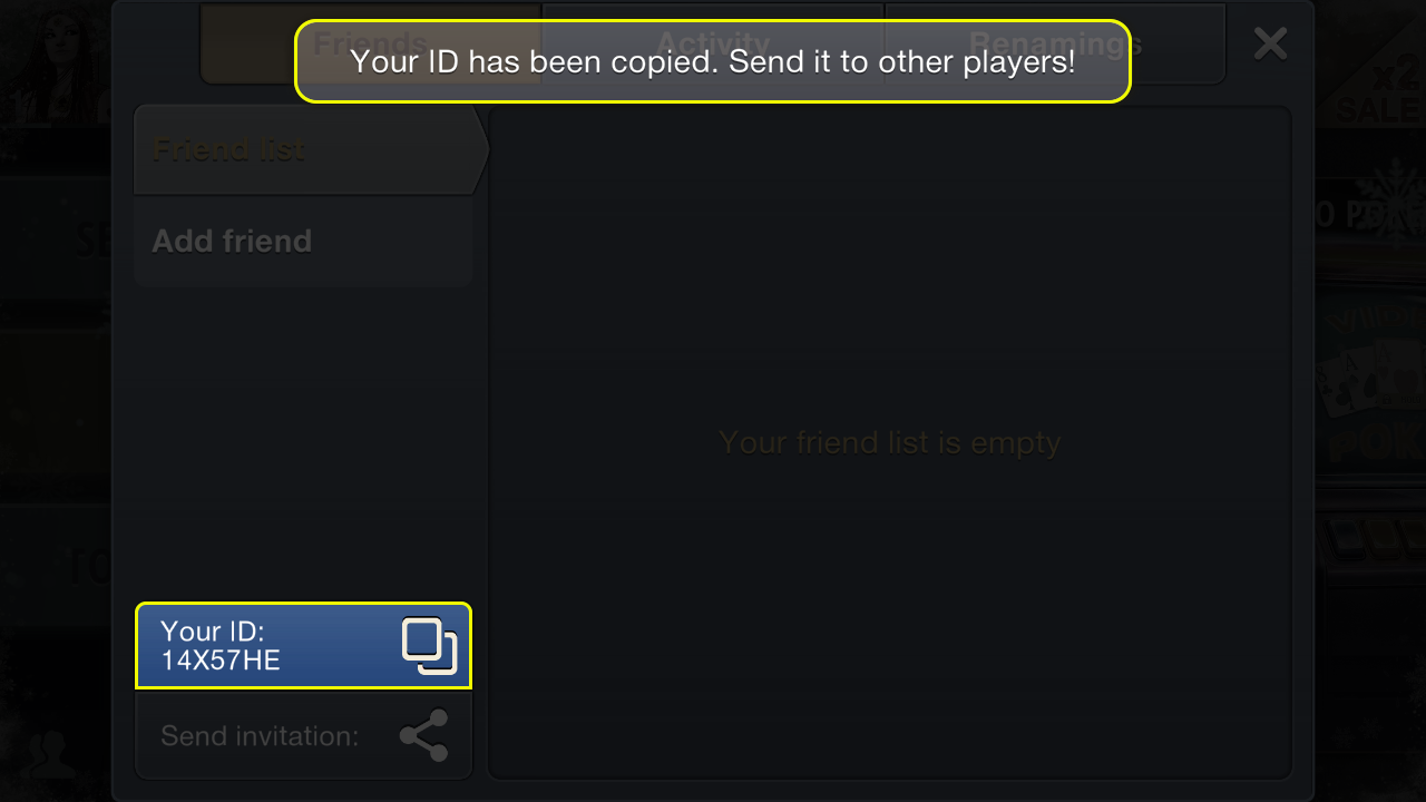 You can now share this copied ID via messenger or social media.