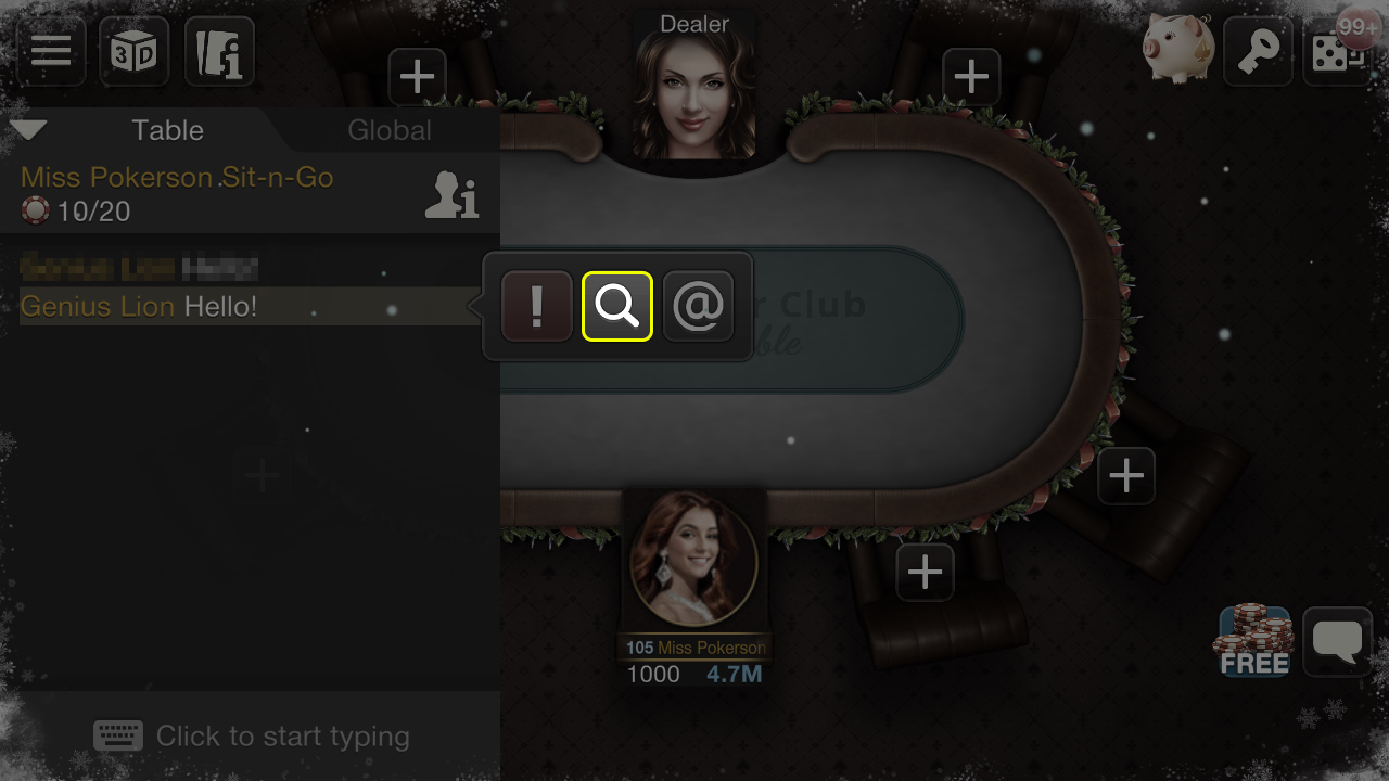 If you want to add a player who is not at your table and you don't know their ID, you can find them through your interaction history.