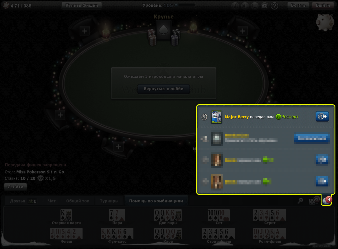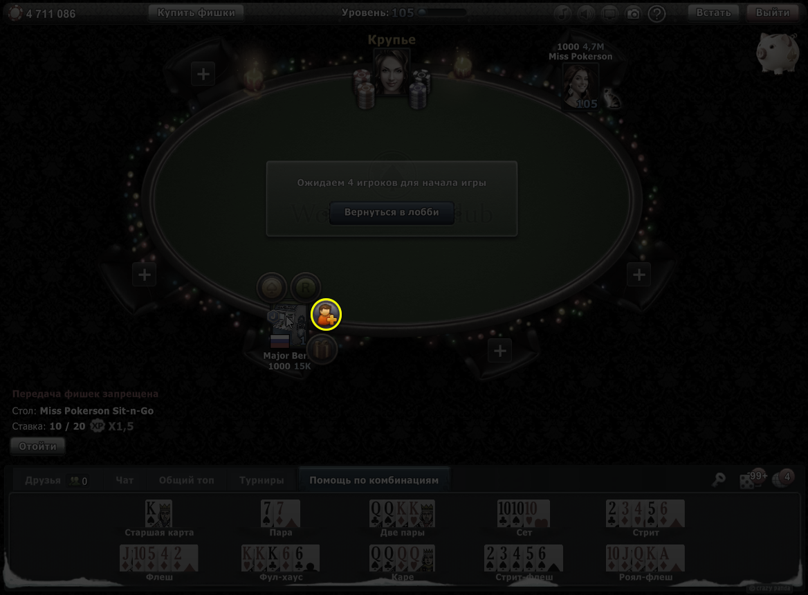 Вы можете отправить заявку в друзья игроку за столом. Для этого нажмите (наведите в ПК-версии) на его аватар за столом и нажмите на кнопку приглашения в друзья.