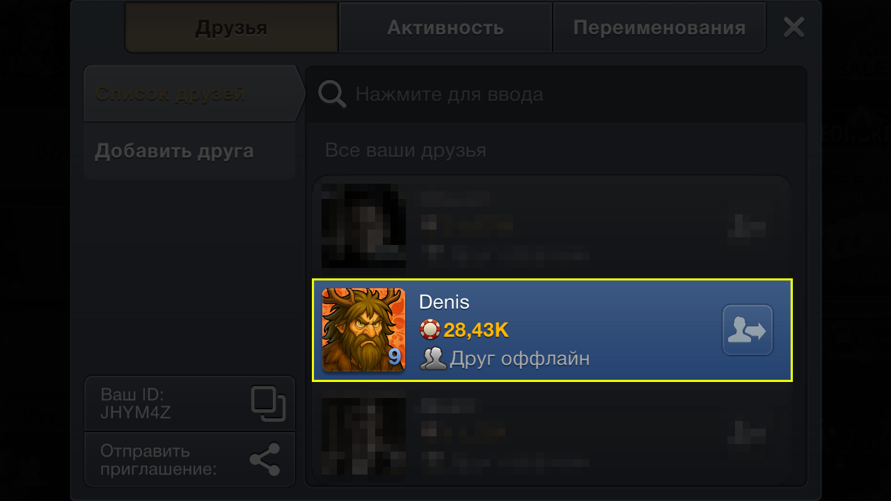 Чтобы удалить игрока, добавленного через приложение, откройте вкладку «Друзья» в лобби игры.