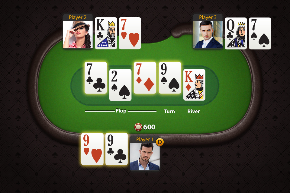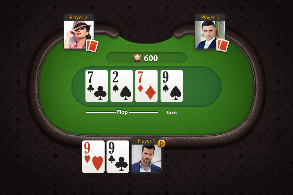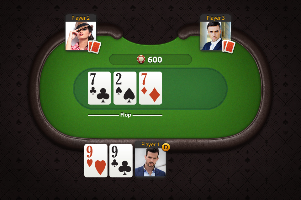 - Крупье и выкладывает на стол три общие карты лицом вверх.