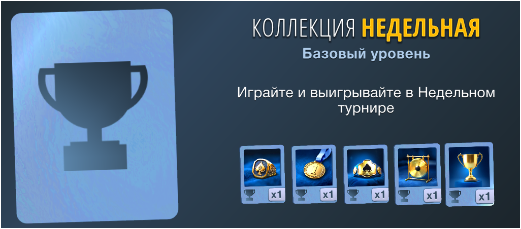 Карточки недельной коллекции добываются в недельных турнирах. Обратите внимание, что требуется игра в классическом недельном турнире — игра в Super Week добывает турнирную коллекцию.